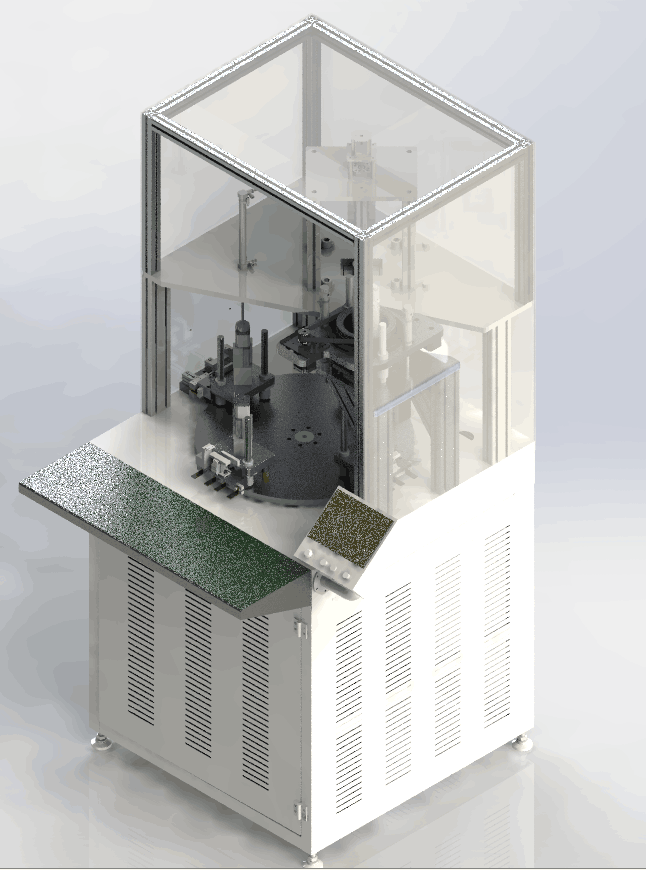 该设备用于步进电机端盖装配、充磁、电性能检测一体机,已经发展到第四代机型,动作节拍